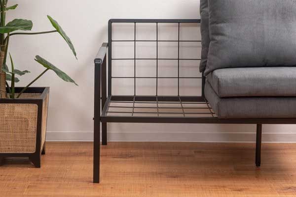 ●暖かみのあるコーデュロイとクールなスチールの組み合わせが、空間をモダンでオシャレに演出。