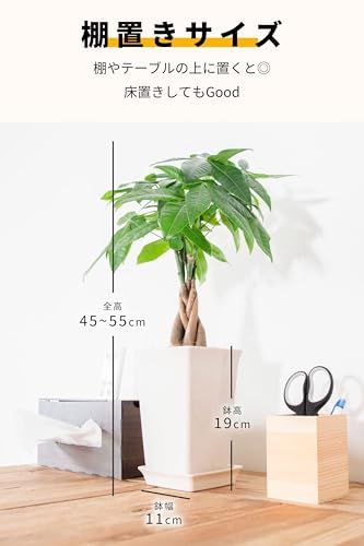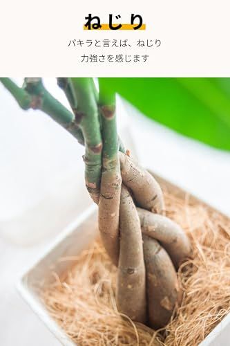 【miipasが贈る本物の観葉植物 パキラ(5号)】お手入れ簡単でおしゃれな観葉植物パキラ(植木鉢5号サイズ)を、手軽にリビング・玄関・オフィスのインテリアに。本物の観葉植物は初めてという方にもぴったりで育てやすいパキラを、5号鉢サイズの大きなサイズでお届けします。パキラの中でも「ねじり」と呼ばれる、幹が編み込まれているタイプは美容室やサロンでよく見かけるオシャレなタイプです。 全体サイズ:幅25~35cm、高さ45~55cm 鉢のサイズ:幅11cm、高さ19cm