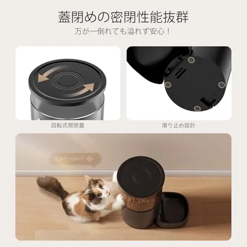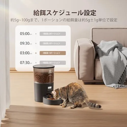 【猫用自動給餌器 1日6回まで定時定量給餌】1-6回の自動設定で愛猫の健康管理を徹底。5g100gの精密調整が可能な自動給餌器。旅行時も決まった時間に正確な量を供給し、肥満防止に貢献。