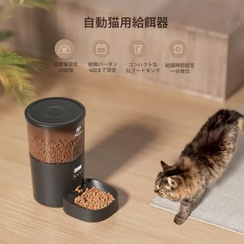 IMIPAW 自動給餌器 猫 【2026新モデル】タイマー式 給餌器 3L容量 2WAY給電 手動給餌 自動餌やり機 手動給餌 設定・お手入れ簡単 1日6食 ブラックri