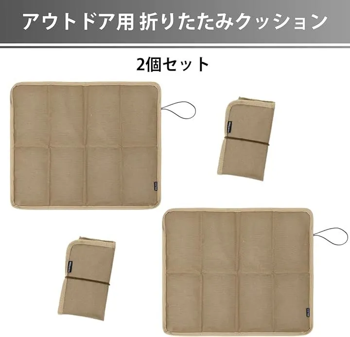 Aurenne クッション 折りたたみ コンパクト アウトドア 持ち運び 座布団 お尻 軽量 シート キャンプ BBQ 登山 レジャー 2個セット (ベージュ, 36x39.5x0.75cm)