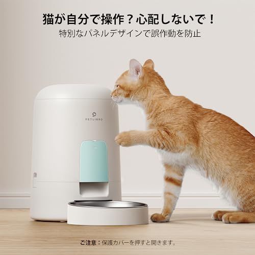 【ペットの誤操作防止】 いたずらな爪がボタンを押して給餌スケジュールを変えるのではないかと心配? 心配しないで、餌やり器の操作パネルに保護カバーが付き! 給餌スケジュールを設定した後、カバーを閉めれば、ペットの誤動作を防止。 また、給餌器の動作状態がタイムリーに分かるように、餌の残量が少ない時、電池の残量が少ない時、また餌が詰まっている時に保護カ