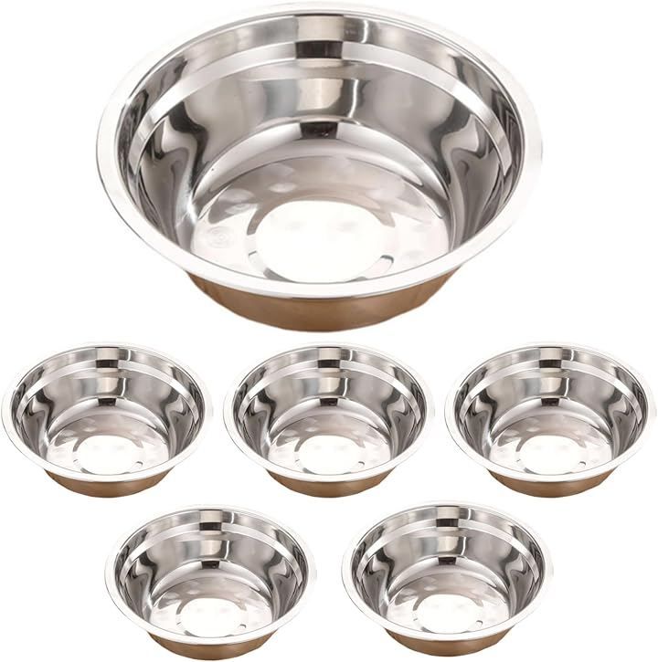Aurenne ペット 皿 ステンレス 犬 猫 水 餌 フードボウル 水飲み皿 食器 餌入れ 餌台 食洗器対応 直径14cm 6個 (シルバー)