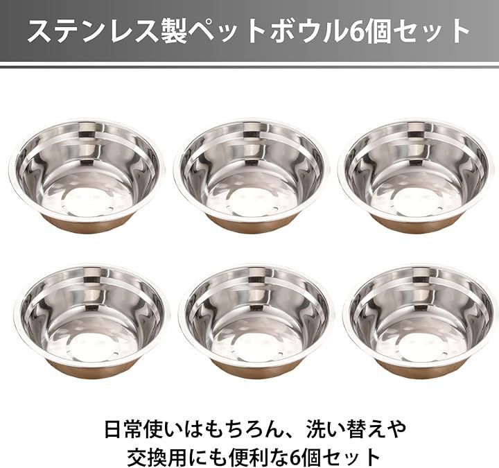 「たっぷり使えるステンレス製ペットボウル6個セット」 日常使いはもちろん、洗い替えや交換用にも便利な6個セット。
