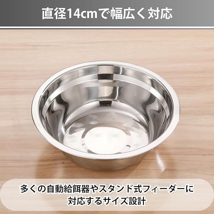 「直径14cmで幅広く対応」 多くの自動給餌器やスタンド式フィーダーに対応するサイズ設計。