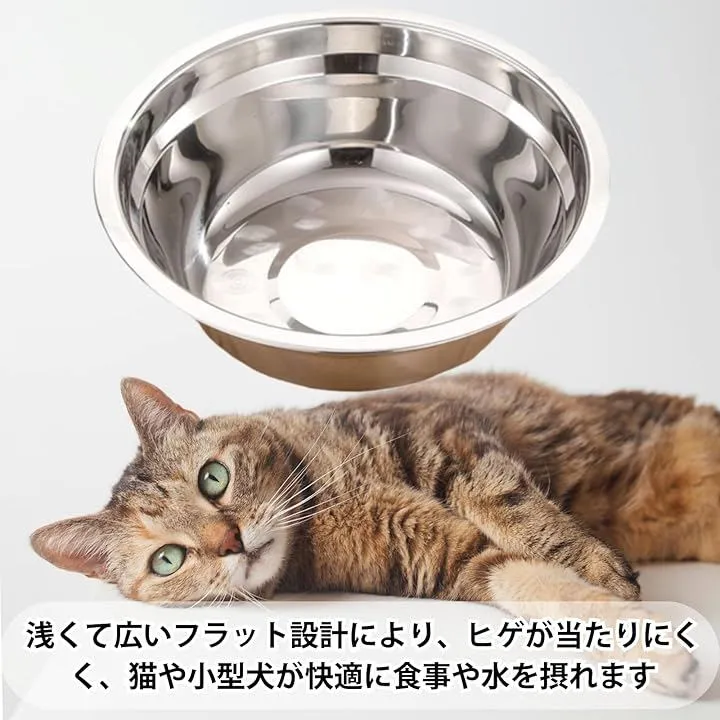 浅くて広いフラット設計により、ヒゲが当たりにくく、猫や小型犬が快適に食事や水を摂れます。