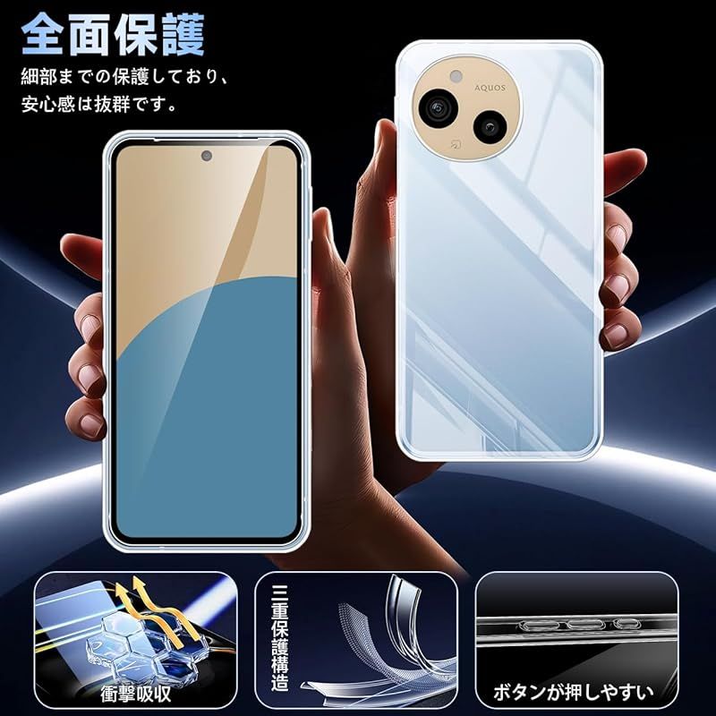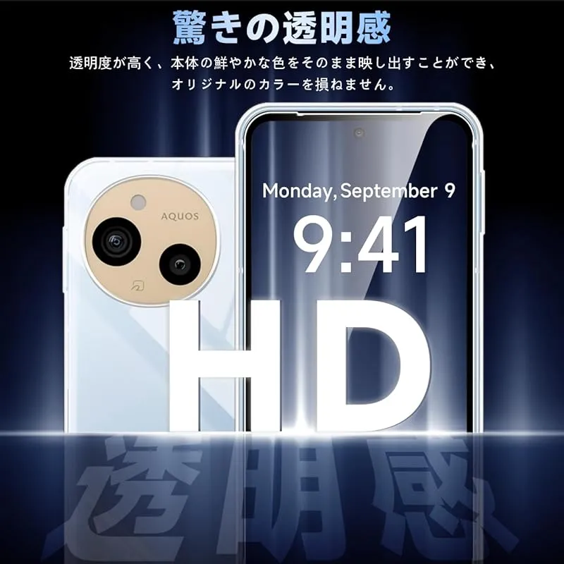 対応 AQUOS sense 9 ケース クリア ケース AQUOS sense9 カバー TPU 保護ケース カバー背面 + ガラスフィルム フィルム 日本旭硝子製 フィルム AQUOSsense9 強化ガラス 硬度9H 高透過率 飛散防 強化ガラス S 0