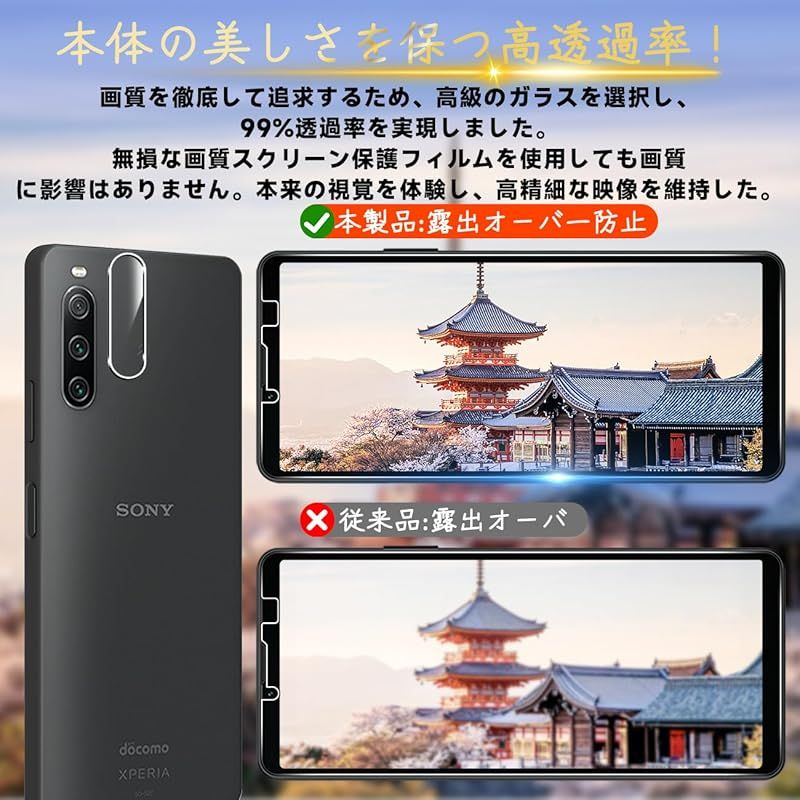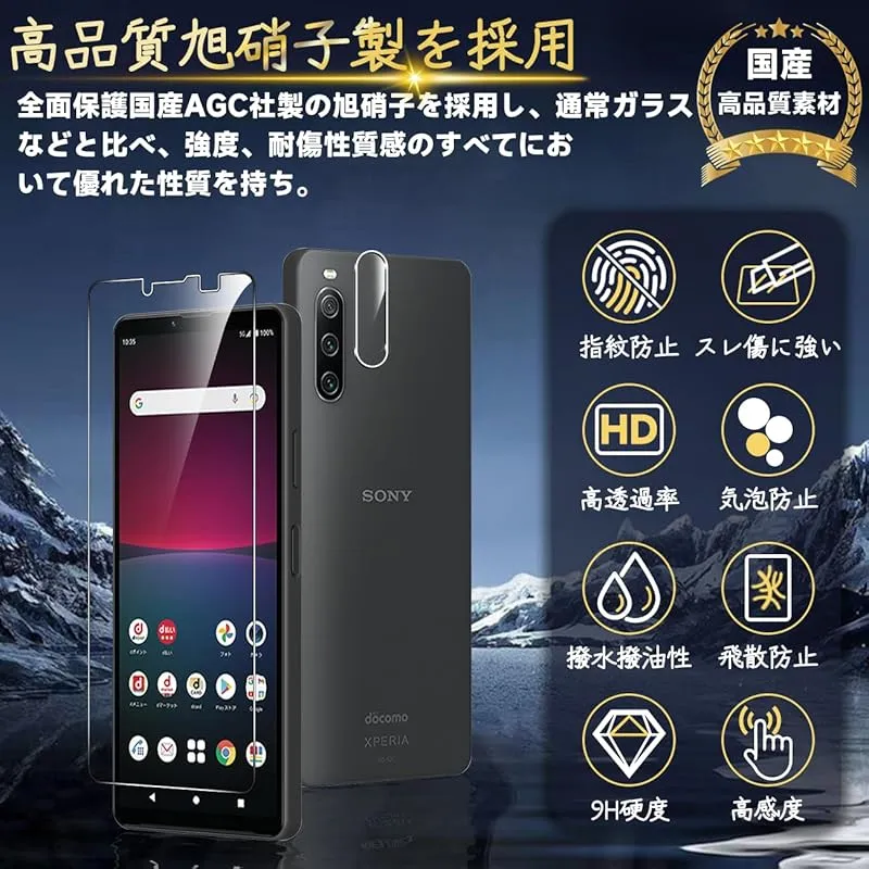 Xperia 10 IV 5G SO-52C SOG07 フィルム 指紋認証対応 【Seninhi 2+2枚セット: 2* Xperia10 IV 強化ガラス + 2* Xperia 10 IV レンズ保護フィルム 】 Xperia10IV ガラスフィルム 1