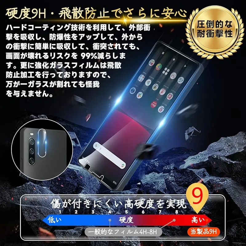 【高品質の材料の9H硬度】 とレンズ保護フィルムはすべて旭硝子で作られており、スマホ保護フィルムの中で最高レベルの9H硬度に達しています、4.5時間以上の高温焼入れ処理を行い、スクリーンプロテクターの圧強度は 125mpa に達し、通常 ガラス の 5 倍になりましたしかもスクリーンプロテクターは衝撃を抑えるシリコンコーティングを内蔵しており、万が一ガラスが割れても、ガラスの破片が飛散しませんハードコーティング技術は、衝撃を最小限に抑えて画面の破損を抑え、すり傷防止や指紋防止もしっかりとスクリーンを保護します*大切な携帯電話の液晶画面を保護し、衝撃や表面のキズを防止します