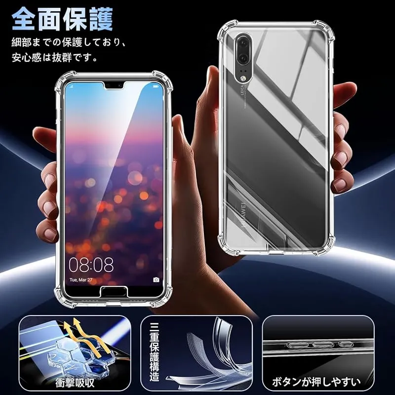 【360°フルガード 軍用グレード、高い耐衝撃性】 本製品はに対応 Huawei P20 する透明ケースです。外側のシェルは高い耐黄い耐性を備えた最先端技術ADMを採用しております。しかも環境にやさしく、無毒で無味の高品質の素材を使用して、酸化防止処理しており、長年でも黄色くなりません。多数回のテストした後、2mの高さで様々な角度から26回落としましたが、携帯電話が全然傷がありませんでした!更に四隅の耐衝撃性は通常の携帯電話ケースの5倍に達し、携帯電話を全面的に保護できます。(ご注意:ご購入前機種をよくご確認くださいね。間違った機種の購入による使えないことを避けてください)