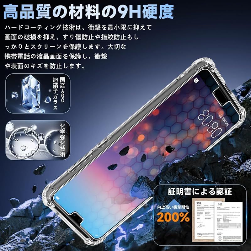 対応 Huawei P20 ケース クリア ケース カバー TPU 保護ケース カバー背面 + HuaweiP20 ガラスフィルム フィルム 日本旭硝子製 フィルム 強化ガラス 硬度9H 高透過率 飛散防 強化ガラス 1