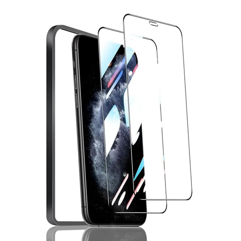 対応 iPhone 11 Pro フィルム ガイド枠付き 【2* iPhone11 pro ガラスフィルム + 1* iPhone11 proガイド枠付き 】表面硬度9H アイフォン11pro 強化ガラス いpほね11pro 用 保護フィルム 高透過率 飛 0