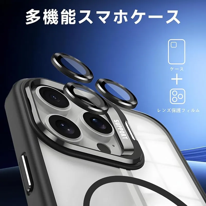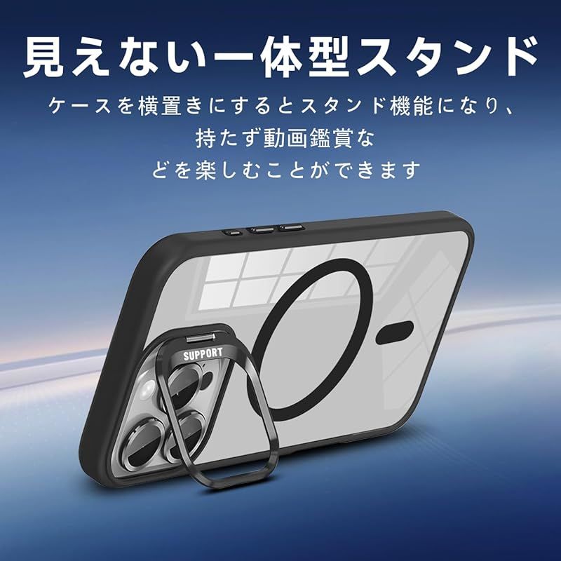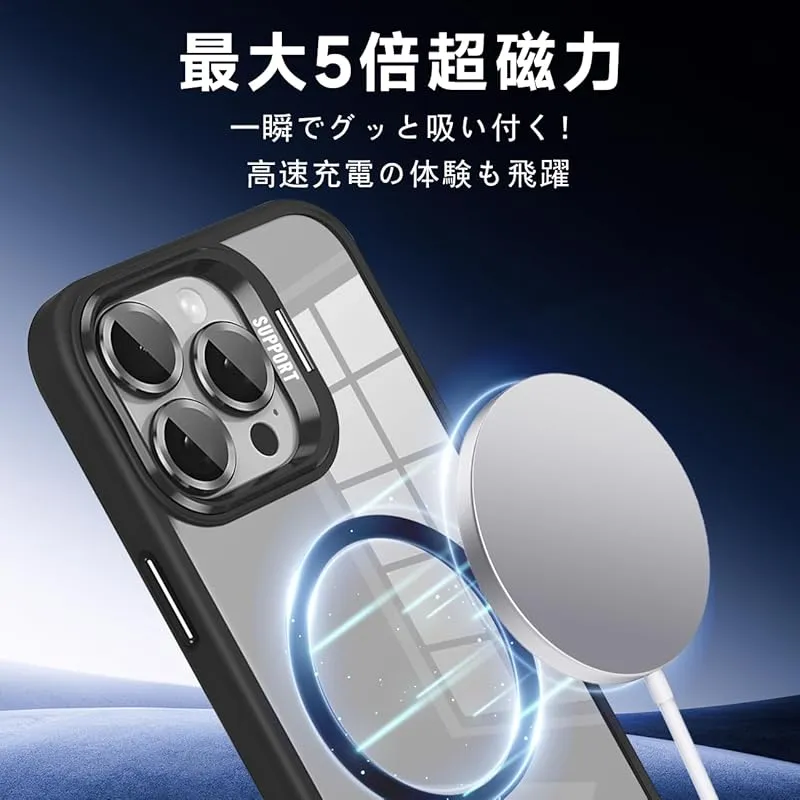 【seninhi対応・米軍規格】iPhone 16 Pro Max ケース seninhi 縦横両対応 半透明 黄ばみ防止 ワイヤレス充電 iPhone 16 Pro Max レンズ保護 耐衝撃 携帯カバー マグネット搭載 車載ホルダー マグセーフ対応 ス 1