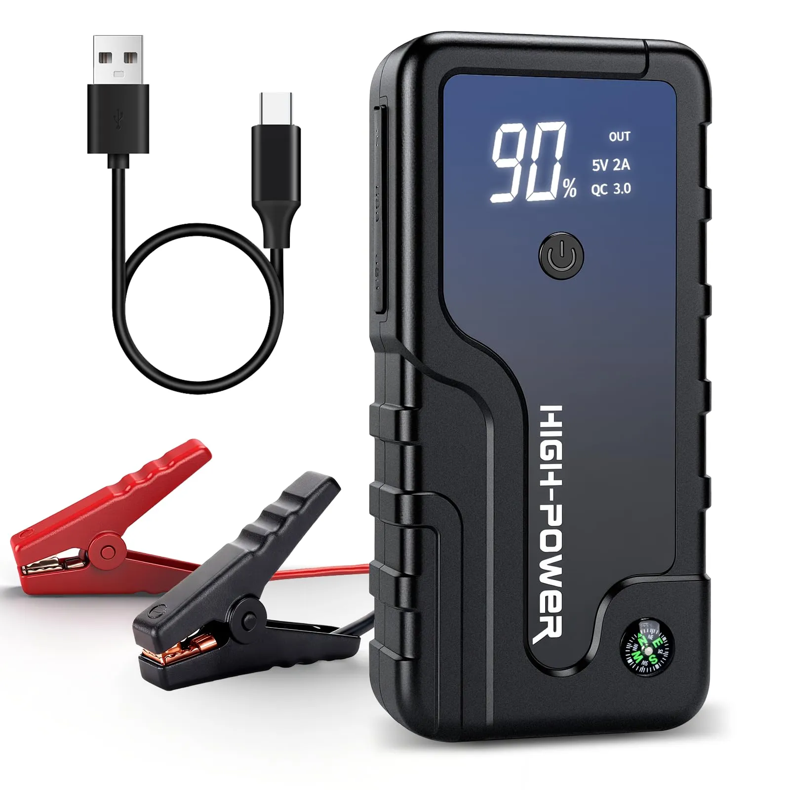 PSE認証済 12V 車用ジャンプスターター エンジンスターター スマートクリップ 車緊急始動 ピーク電流200A 大容量&緊急時/車載用LEDライト内蔵 ブラック【送料無料】【☆Yuki☆Shop】