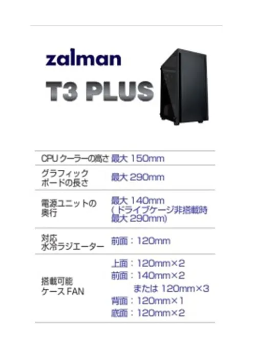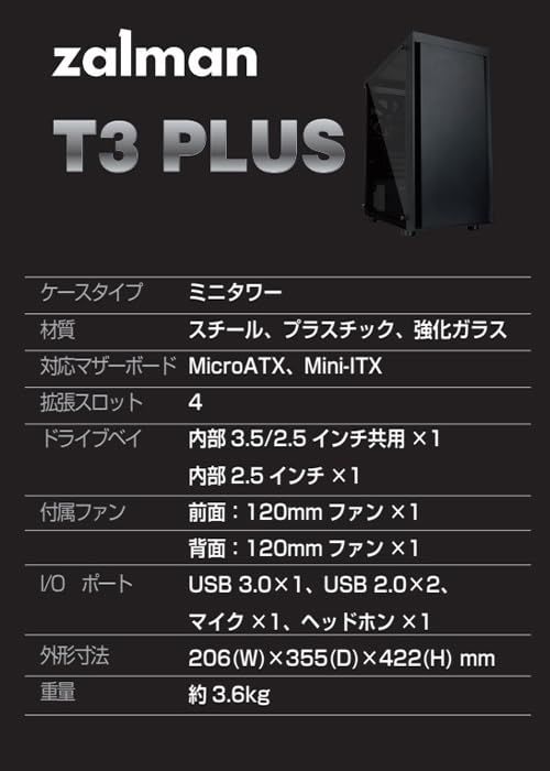 ZALMAN T3 PLUS 120mmファン 2基 標準搭載 Micro-ATX ミニタワー PCケース T3 PLUS CS8683ri