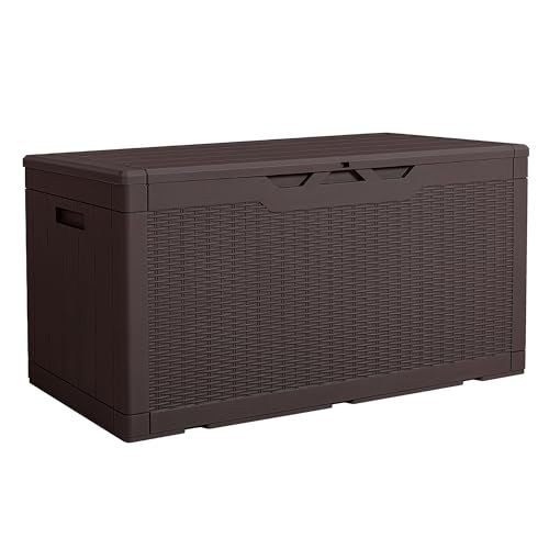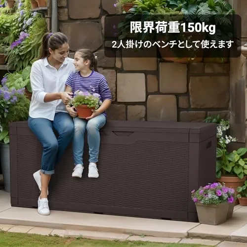 物置 収納庫 屋外 防水 耐候 380L大容量 幅123*奥行57*高さ62cm ベランダ収納 大型物置 倉庫 ベランダストッカー 屋外収納 ガーデン収納 ベンチ コンテナ ガーデン/庭/ベランダ 収納 大容量 おしゃれ (茶色, 380L)ri