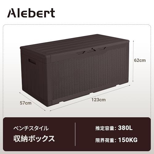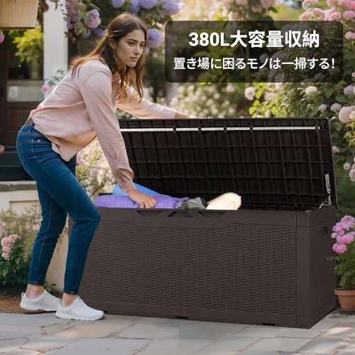 「マルチに活躍する大容量収納庫」:Alebert大容量収納ボックス、置き場に困るモノは一掃します!室内には置きにくい物の収納に困っでいる?家周りが散らがり、ご近所の視線が気になる?ゴミ出しの日までゴミ袋の保管場所に困っている?380Lの大容量でこれ一台で解決!レジャー用品、ガーデニング用品、掃除道具、資源ごみやポリタンクなどの荷物はまとめて収納できます。家の周りで散乱しがちなに荷物をすっきりし、ゴミによるカラスや猫のイタズラ対策にも最適です。