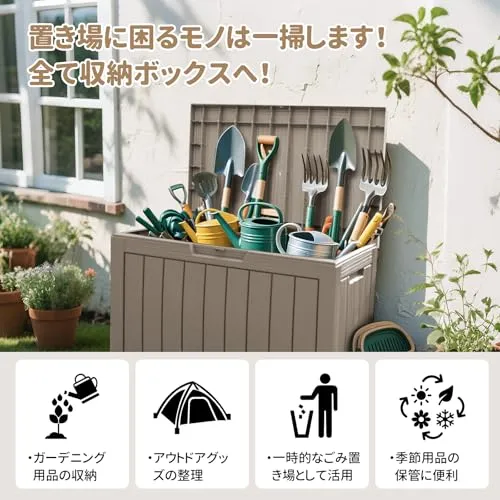 「大容量300L収納可能 快適空間お手伝い!」 YIALO大容量収納ボックスには、ガーデニング用品や清掃用具、季節用品など、置き場に困るモノをまとめて収納いただけます。リサイクルごみの一時的な保管場所としても!ゴミによるカラスや猫のイタズラ対策にも最適です。お家を清潔で快適な空間をキープ。