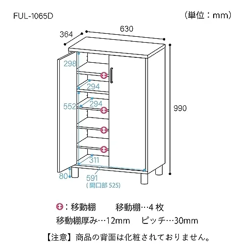 白井産業 下駄箱 シューズボックス 玄関収納 木製 追加や買い替えにぴったりな幅63cmサイズ 約12~18足収納 ダークブラウン木目柄 ベーシックデザイン 幅63×奥行36.4×高さ99cm FUL-1065D DK フルニコri