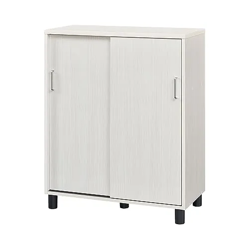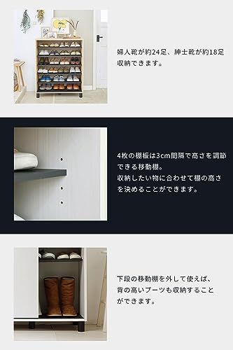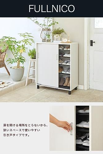白井産業 下駄箱 シューズボックス 玄関収納 木製 開閉に場所を取らない引き戸タイプ 幅80cmサイズ 約18~24足収納 ホワイト 白 木目柄 ベーシックデザイン 幅80.2×奥行39×高さ99cm FUL-1080SD WH フルニコri