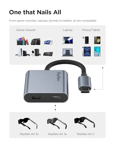 RayNeo USB-C ARグラスアダプター 4K60Hz/100W PD充電対応 Switch/PS5/Steam Deck/ROG Ally/PS5/Xbox/Mac mini/ノートPC接続可能 Air 3s専用Ai【送料無料】【☆Yuki☆Shop】