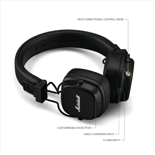 Marshall ワイヤレスオンイヤーヘッドホン Major V ブラック Bluetooth / 連続再生100時間 / Qi充電対応/通話対応 【国内正規品】ri