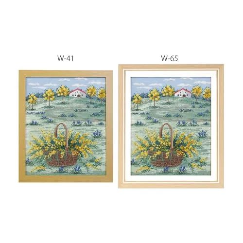 風景画クロス・ステッチキットなど、オリムパスフレームW-41・42・46使用サイズのキットの作品を入れることができます。