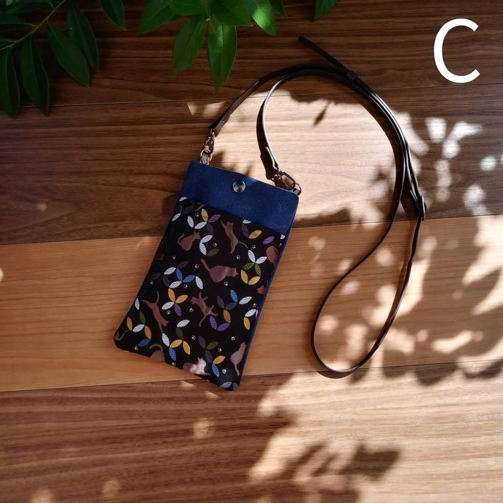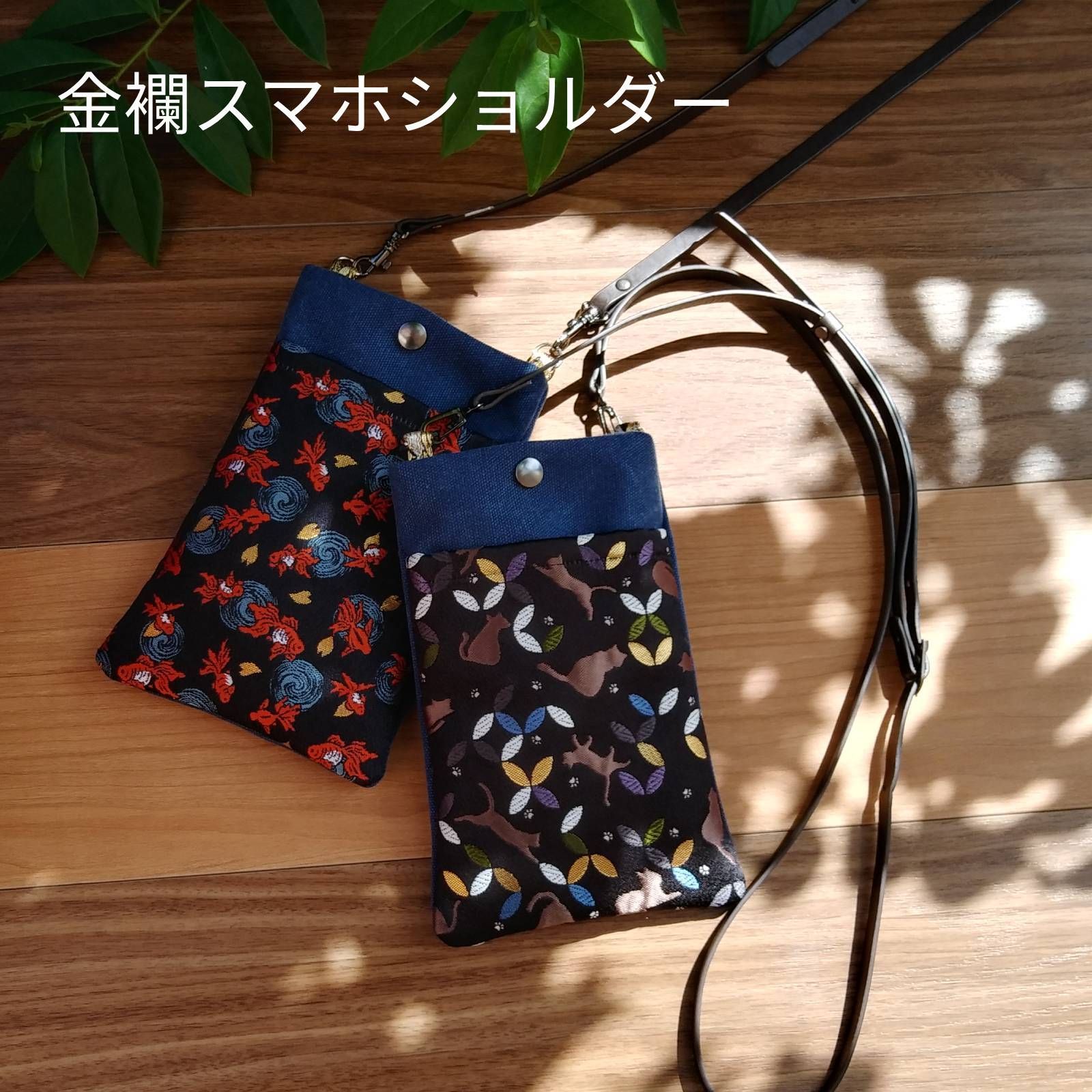 【金襴スマホショルダー 七宝ねこ】 金襴xヴィンテ帆布 made in japan
