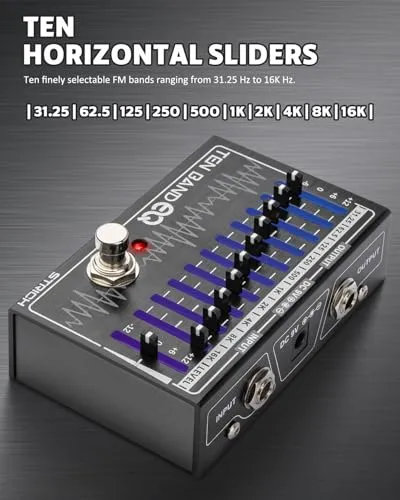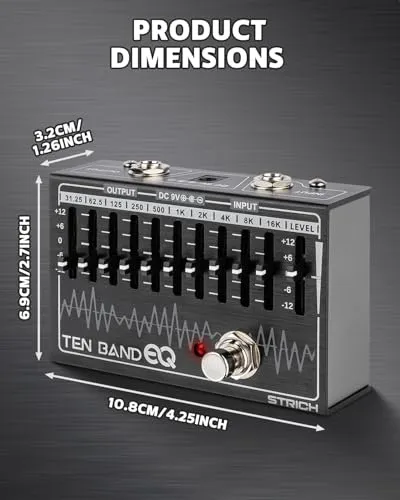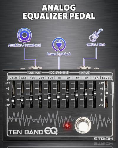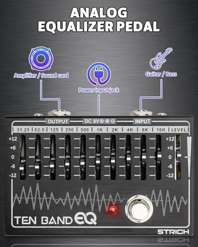 STRICH EQイコライザー エフェクター 10バンド イコライザーエフェクトペダル エレキギターとベース用イコライザー 10周波数帯域(31.25Hz~16kHz) 各バンドのゲイン/減衰±12dB TENBAND EQCH