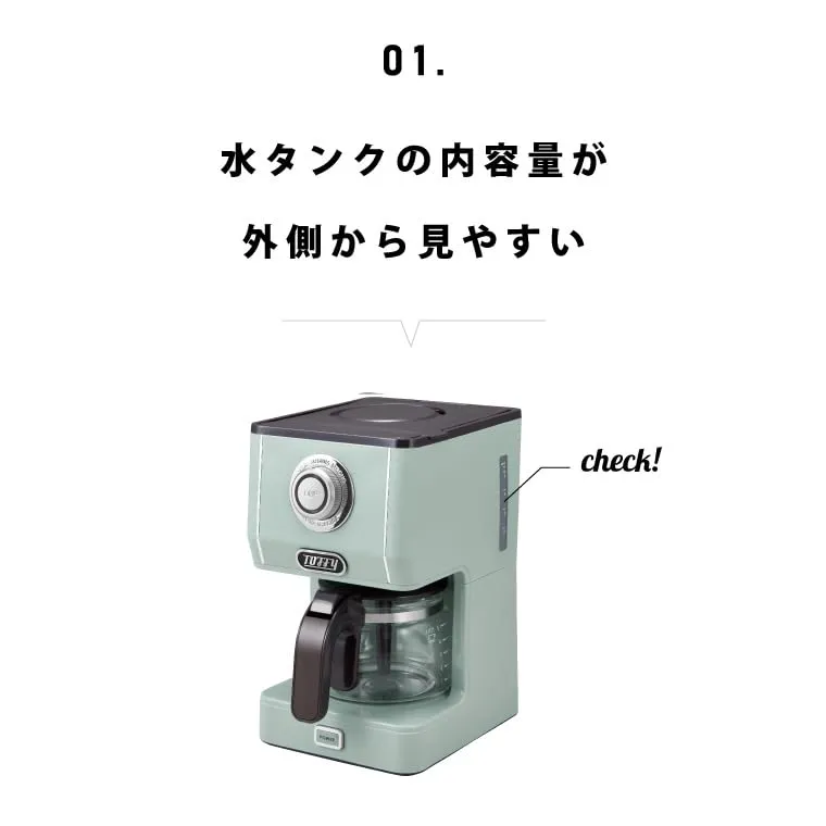 【Toffy/トフィー】 アロマドリップコーヒーメーカー K-CM5 スレートグリーン ドリップ式 蒸らし機能 自動保温機能 ガラスポット メッシュフィルター付き レトロ K-CM5-SGCH