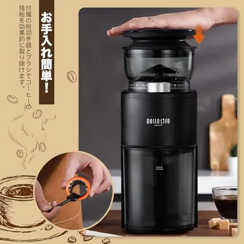D★BelleLife コーヒーミル 電動 コーヒーグラインダー コーン式コーヒーグラインダー 極細~粗挽き 粒度40段階設定 コーヒー粉砕機 小型 珈琲ミル 静電気飛散防止豆挽き 粉末 取り外し可能 掃除ブラシ付