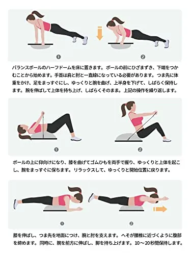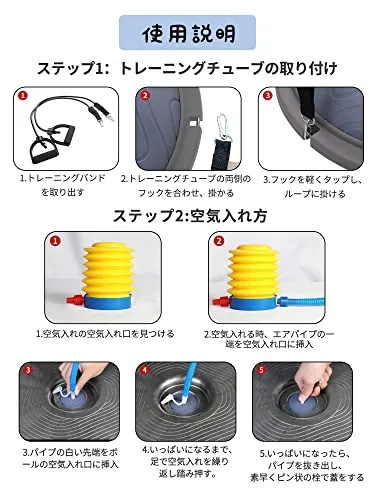 【より厚い壁 耐荷重300KG】バランスボードの直径:約47cm;高度:約15cm;トレニンーグバンド1ペア付き;バランスボードの重量:2.93KG;軽量で便利、空気入れ付き、空気を抜き・入れ安い。高品質で環境に優しいPVC材質を採用し、耐久性・リバウンド抜群、清潔しやすい