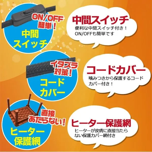 ヒーター保護網!2段階ヒューズ! こたつ内部のヒーターが皮膚に直接当たらない保護カバー網付き。 また、温度ヒューズも2段階で搭載しているので、安心して使用できます。
