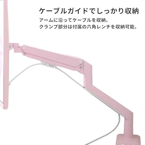 【理想のゲーム部屋に】デスク周りをホワイトカラーでコディネートができる、白色のモニターアーム。お部屋のインテリアを損ねることなく馴染みます。同じカラーのゲーミングモニターと一緒に使うことで、より統一感を持たせられます。ホワイトの他ブルーやピンクなど7色展開で他にはない色味をお楽しみください。モニターアームを使うことでディスプレイの下にスペースができ、スッキリとした印象に。また、小物を置いて推し活スペースとしても楽しむことができます。 [特徴] 重量が1-9kgの17-32インチ、VESA規格(75mm x 75mm、100mm x 100mm)に対応した液晶ディスプレイに対応したモニターアームです。 [多角度調節] 取り付けたモニターは上向き90、下向き45、左右90、回転360、また上下左右だけなく前後にも調節可能。モニターを好きな高さや位置に設置して快適なゲーム環境を作ることができます。 [組立・取付簡単] クランプ固定とグロメット固定の二種類の固定方法、机にしっかり固定することで液晶ディスプレイの転倒を防止 [組み立てのポイント] モニターを取り付けた状態で、アームが水平になるように(アームが下がってくる場合は反時計回り、上がってくる場合は時計回りに)調整ネジを回してください。 [保証/サポート]2年間保証