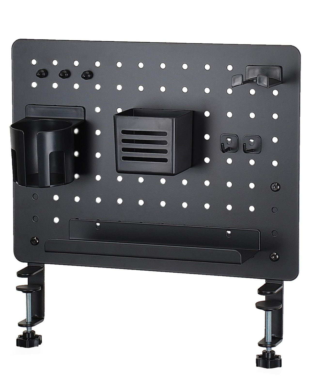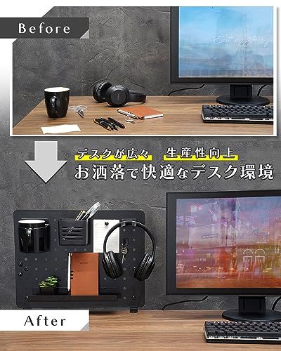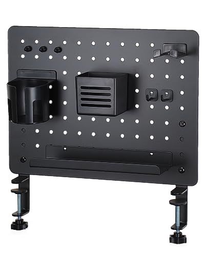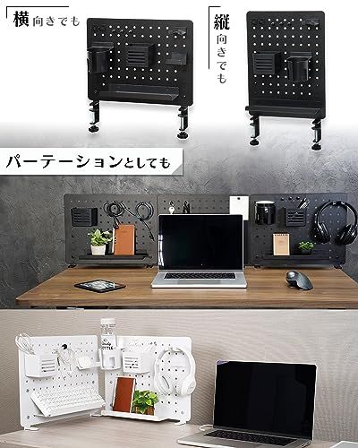 EastForce ペグボード デスクパネル (ブラック, 中) マグネット対応 ゲーミング パネル 卓上収納 フック トレー付き クランプ式 有孔ボードri