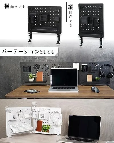 嬉しい2WAY仕様:ペグボードは縦向きにも横向きにも取り付けることができます。デスクサイスに合わせて自分好みに取付可能です。
