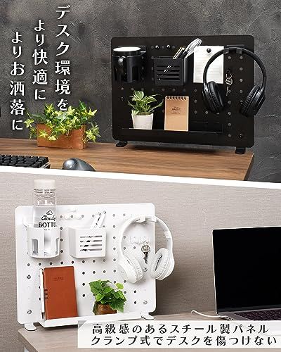 デスク環境をより快適によりお洒落に!デスクに挟み込むだけで取付可能なクランプ式ペグボード。デスク上に散乱している物をペグボードに載せてデスク広々、生産性向上、お洒落で快適なデスク環境になります!