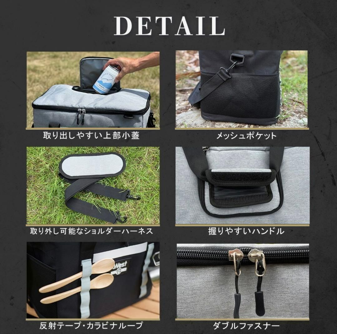 【冷気をブロック】 ・上部に取り出し口(クイックサーブオープニング)があり、クーラー内の冷気を逃す事なく中の物を素早く簡単に取り出すことが可能。 ・カラビナループを設置しており、キャンプでよく使うシェラカップや小さい懐中電灯などの物を吊り下げ可能。 ⸻
