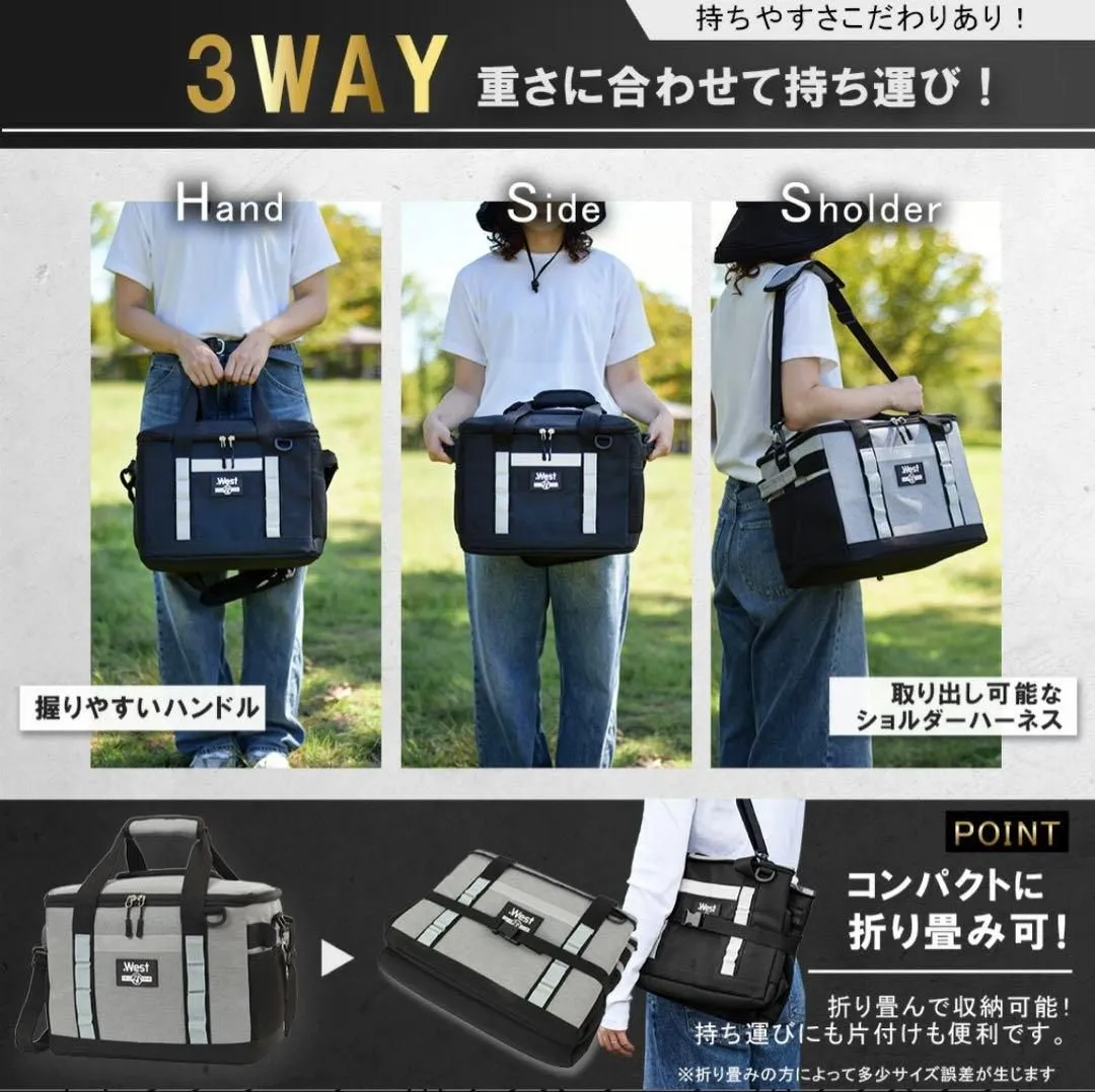 【365日使える大容量保冷バッグ】 ・わずか860gという軽量設計 ・肩ベルトが付いているため、手持ちでも肩掛けでも利用できる3WAY仕様
