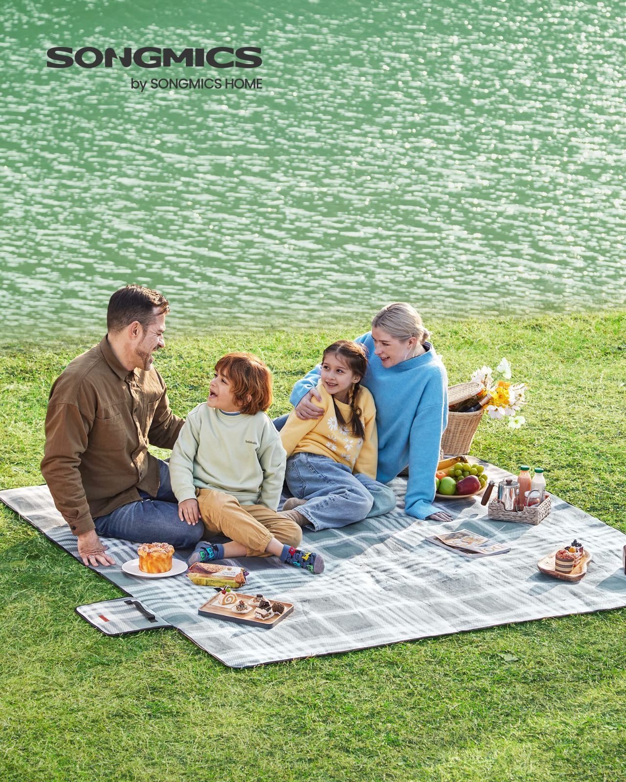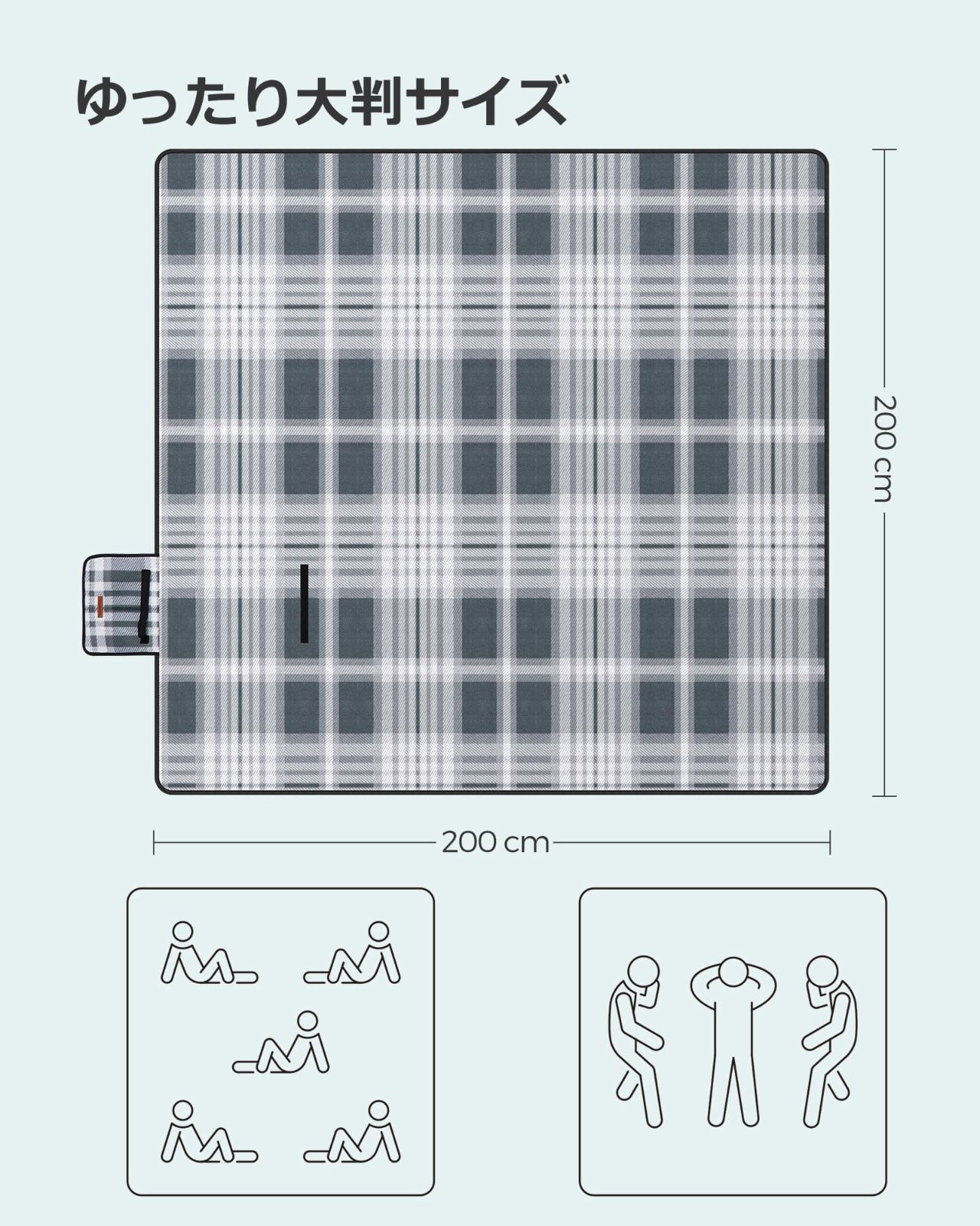 防寒 ピクニックシート おしゃれ 底部防水 大判 折り畳み コンパクト キャンプ ピクニックマット アウトドア 200×200cm 室内外兼用 厚手 携帯便利 レジャーシート GCM76S SONGMICS