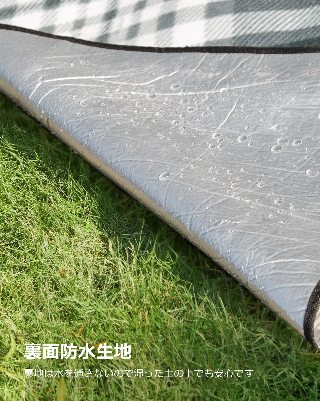【優れる防水性能】底部はアルミ被覆なので保温性があって、地面からの湿気を遮断します。砂や土で汚れたら、水でザブザブ洗えば綺麗になり、簡単なお手入れで長い時間の使用にも耐えます