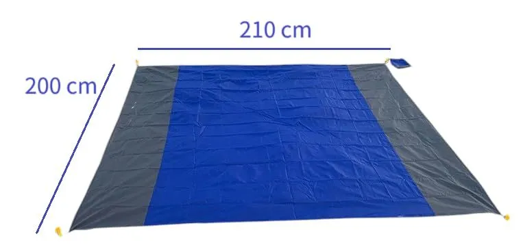 レジャーやキャンプなどに最適なレジャーシートです。210 x 200 cmと大き目のサイズなので、一枚で4人ほど座ったり、寝転んだりすることができます。