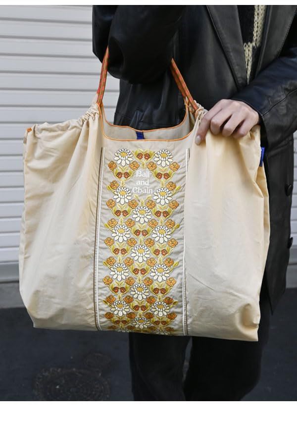 新品 [Ball & Chain] ボールアンドチェーン Lサイズ FLOWER LINE フラワーライン 花柄 エコバッグ 買い物バッグ トートバッグ 301146 (S.BEIGE L)