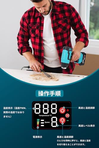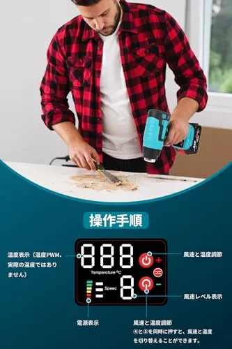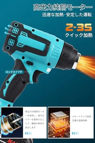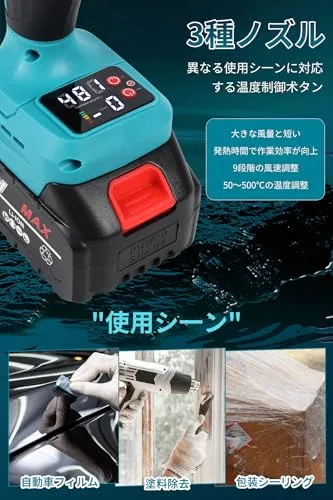 D★ヒートガン コードレス 18v マキタのバッテリー交換可能 6段風量調整 50?550℃調整 充電式ヒートガン ノズル3個付き (本体 + バッテリ2個)