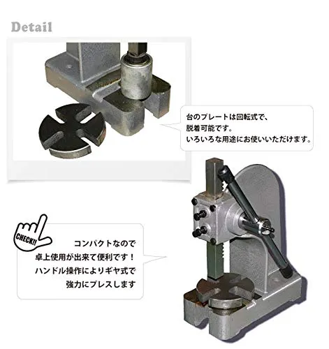 D★KIKAIYA アーバープレス ハンドプレス 1トン 強力 圧入 プレス作業 型抜き ハトメ レザークラフト 卓上 HP-1