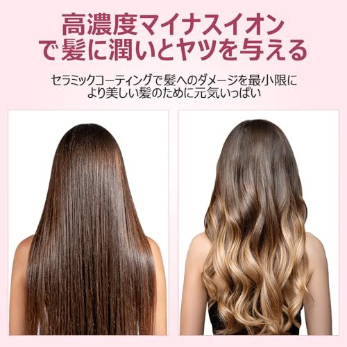 【PTC加熱技術】加熱速度が速く、セラミック釉層が均一に加熱され、毛束へのダメージを防ぎます、 30秒で素早く加熱でき、忙しい朝のスタイリング時間を短縮、熱を均一に髪に伝え、一日中良いヘアスタイルを維持することができます。