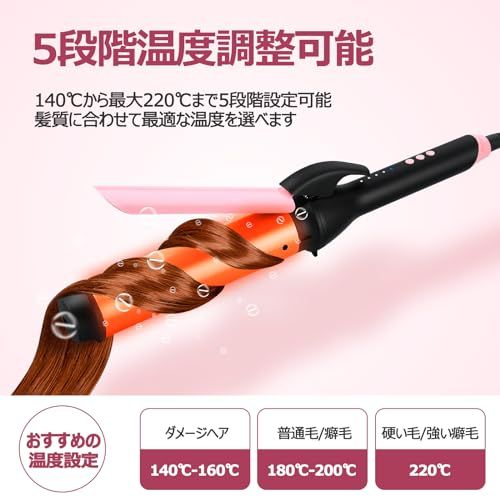 【5段階温度調節】温度は140220まで、5段温度調節可能、Hofiwiプロ仕様カールアイロンは髪質に合わせて、ショートヘア、ロング髪、柔毛、硬毛、前髪など髪質に対応、髪質に合わせて最適な温度を選べます。