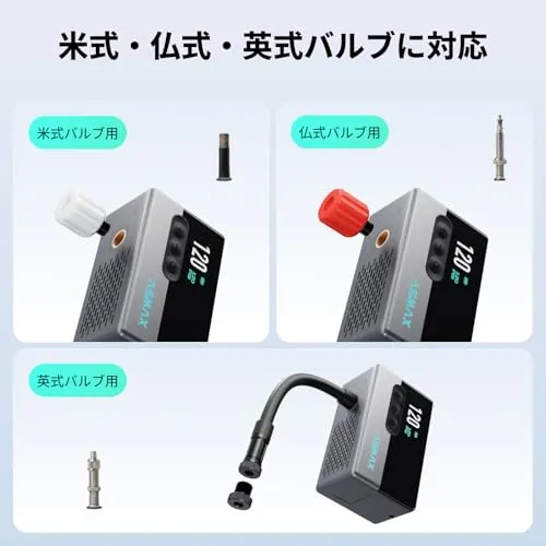 D★ASMAX T30 自転車 空気入れ 電動 120PSI 自転車エアポンプ タイヤ空気圧検知 ロードバイク携帯電動ポンプ 小型 コンパクト自動停止 米式/英式/仏式 全バルブ対応 LEDライト付き