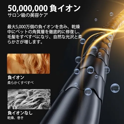 【マイナスイオンで輝く毛】5000万のマイナスイオンが静電気を中和し、ペットの毛をブラッシングしやすく、滑らかで光沢のあるものにします。これにより、毛皮と皮膚の健康が改善され、切れ毛や抜け毛が減り、毛の成長が促進され、かゆみや不快感が軽減されます。