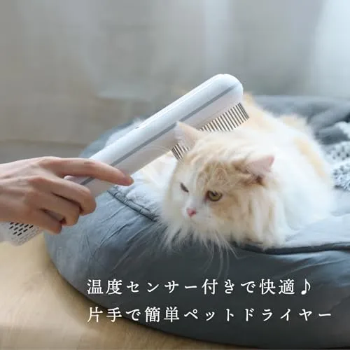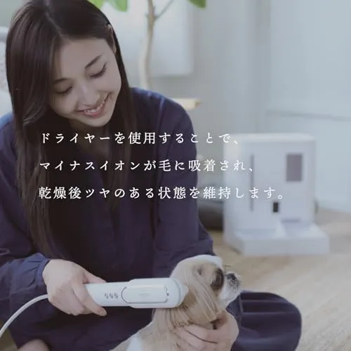 【2025年グッドデザイン賞受賞】mino ペットドライヤー 小型・コンパクト 軽量なスティックタイプ 猫用 犬用ドライヤー ブラシノズル 時短・速乾 温度風量調節可能 2種ノズル付き 家庭用および旅行用 温度センサーを搭載&自動温度ロック マイナスイオンCH